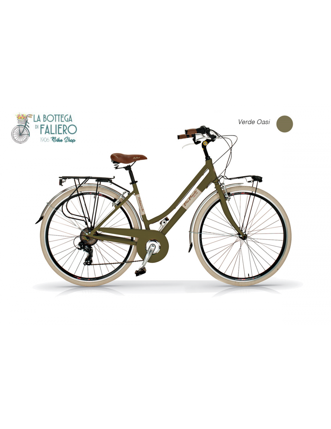 La Via Veneto Elegance Donna è una bicicletta stile retrò molto curata nei dettagli e con componenti di alta qualità come il telaio e le rifiniture completamente in alluminioe con piantone e manubrio reclinabile.