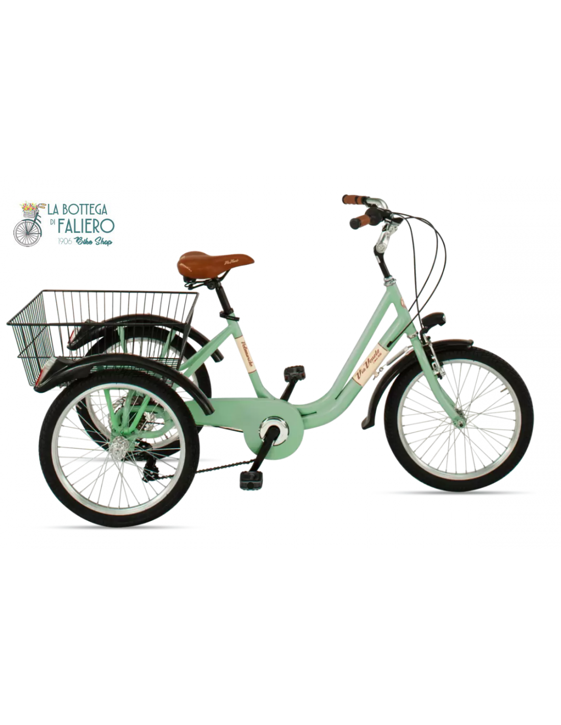 La funzionalità si veste di glamour. Triciclo di Via Veneto è la bici a tre ruote che combina la funzionalità all'eleganza. Utile per chi non vuole rinunciare a un giro in bicicletta ma vuole sentirsi sicuro o per quanti hanno la necessità di avere molto spazio per grandi carichi.